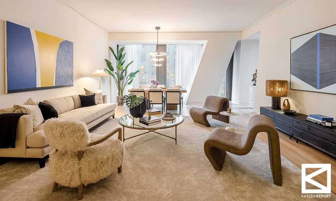 Combining superb sophistication and craftsmanship with the intimate feeling of home, Residence 38C at 53 West 53 comprises 2,432 square feet, offering three bedrooms, three-and-a-half bathrooms, and north-, south-, and west-facing exposures. Gracious proportions and ceilings ranging up to approximately 10’9″ set the awe-inspiring stage for world-renowned designer, Thierry Despont, to craft singular spaces in the sky with many custom elements typically reserved for primarily commissioned homes. The rich yet soft palette of museum-quality finishes imbues each space with boldness and elegance.