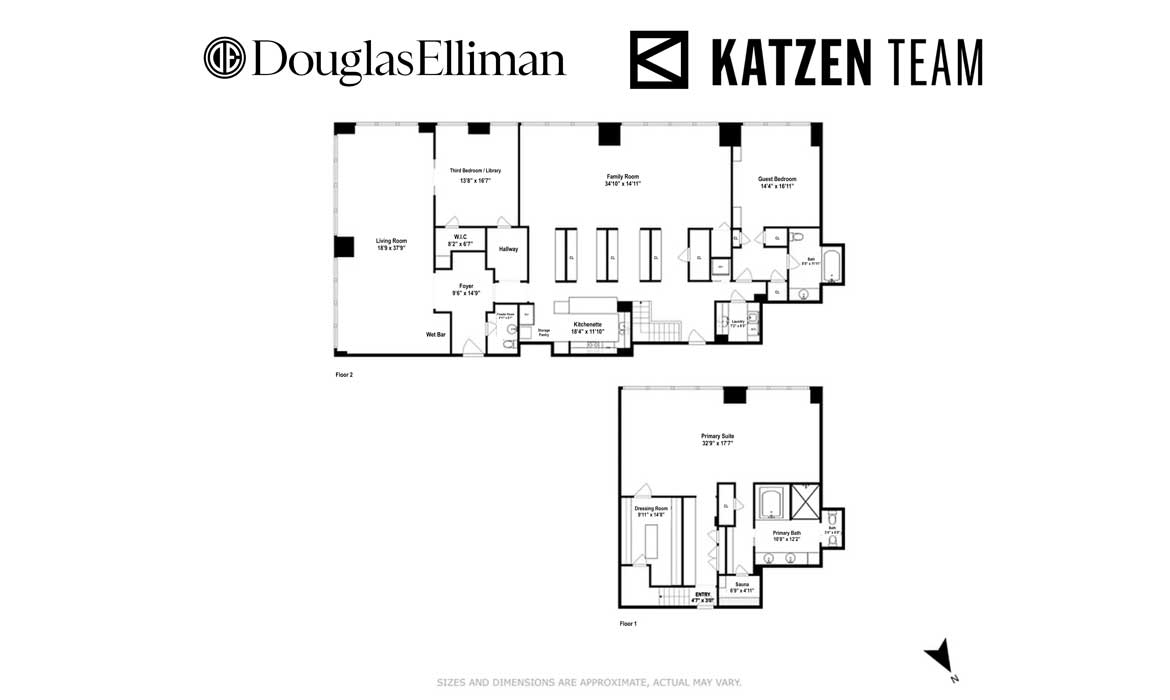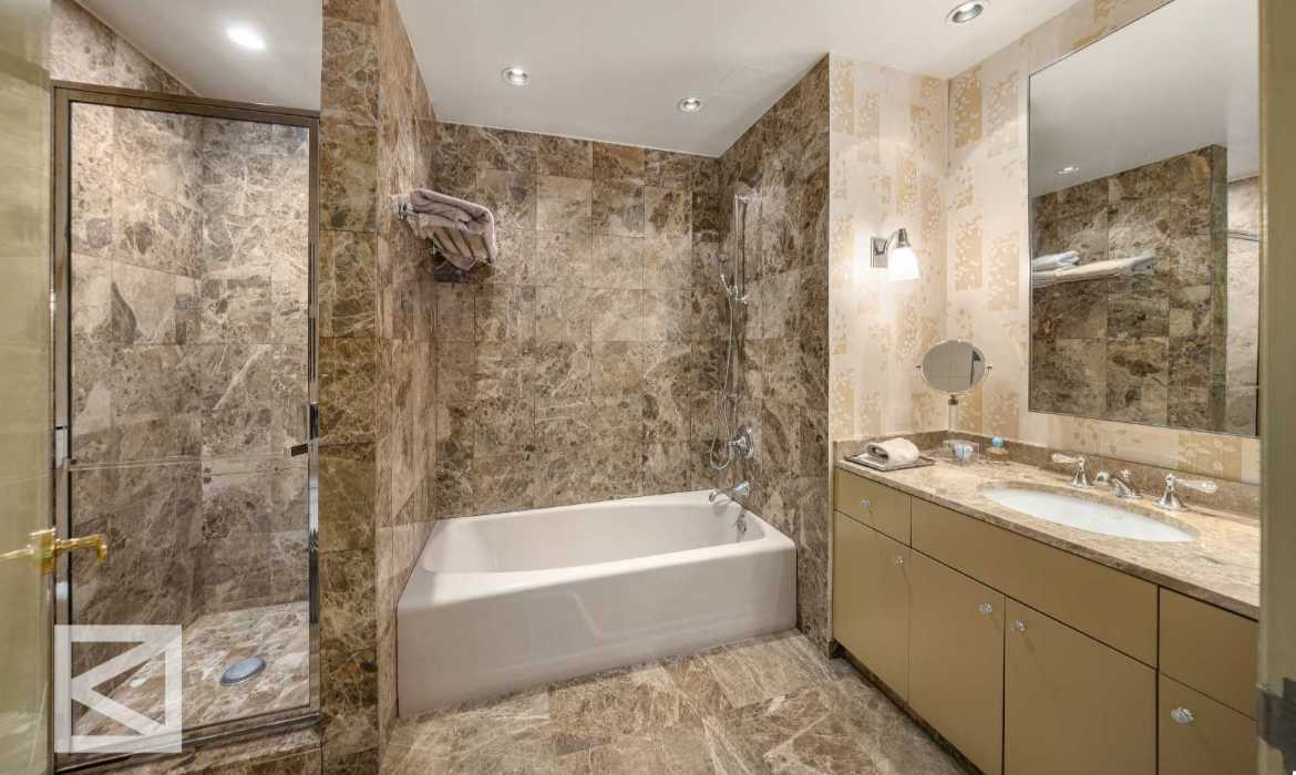 The primary suite anchors the lower level: oversized, private, and complete with a dressing room and a spa-caliber bath with jacuzzi and a separate sauna. Every detail is considered – custom storage throughout, a dedicated laundry room, zoned central air, and soundproof windows that turn Fifth Avenue into silence on demand.