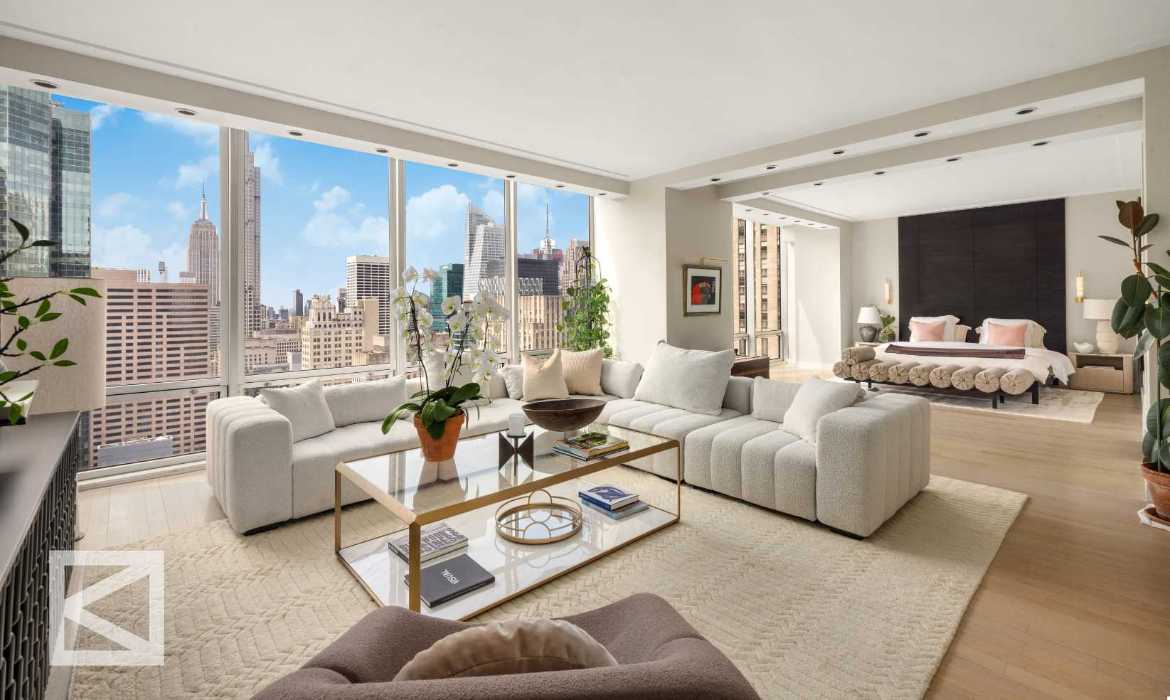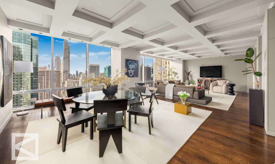 A high-floor corner duplex at Olympic Tower. Spanning over the 33rd floor and 34th floor, this incredible duplex is set apart. Offering Southern and Eastern exposures that flood the home with light, framing cinematic views of the Empire State Building, St. Patrick’s Cathedral, Rockefeller Center, and the East River.